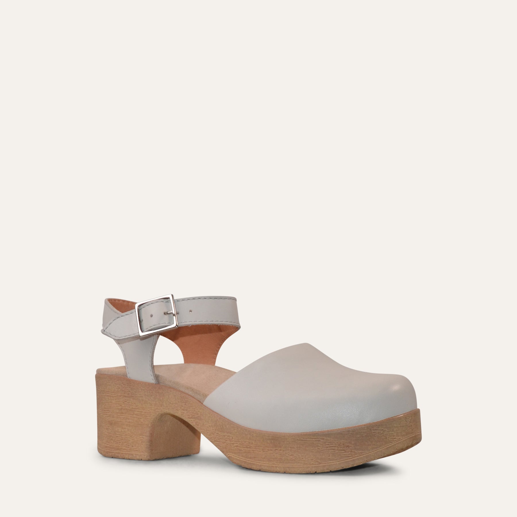 The Dolores Mary Jane in cream leather offers a soft, elegant look on a comfortable clog platform. Featuring a classic Mary Jane strap, a rounded toe, and an anatomic insole, it ensures all-day comfort. Handcrafted with care in a family owned business in Portugal.