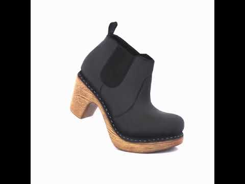 The pull-on Doris Chelsea boot in black leather is the perfect everyday ankle boot. With its rounded toe, clog-style sole, and visible rivets, this stylish boot brings together the look of a traditional clog boot with the easy wear of a Chelsea. It pairs perfectly with jeans or chunky socks. Handmade in Portugal, the Doris boot features elastic sides and a cushioned, flexible sole for extra comfort. Super chic, super comfy.