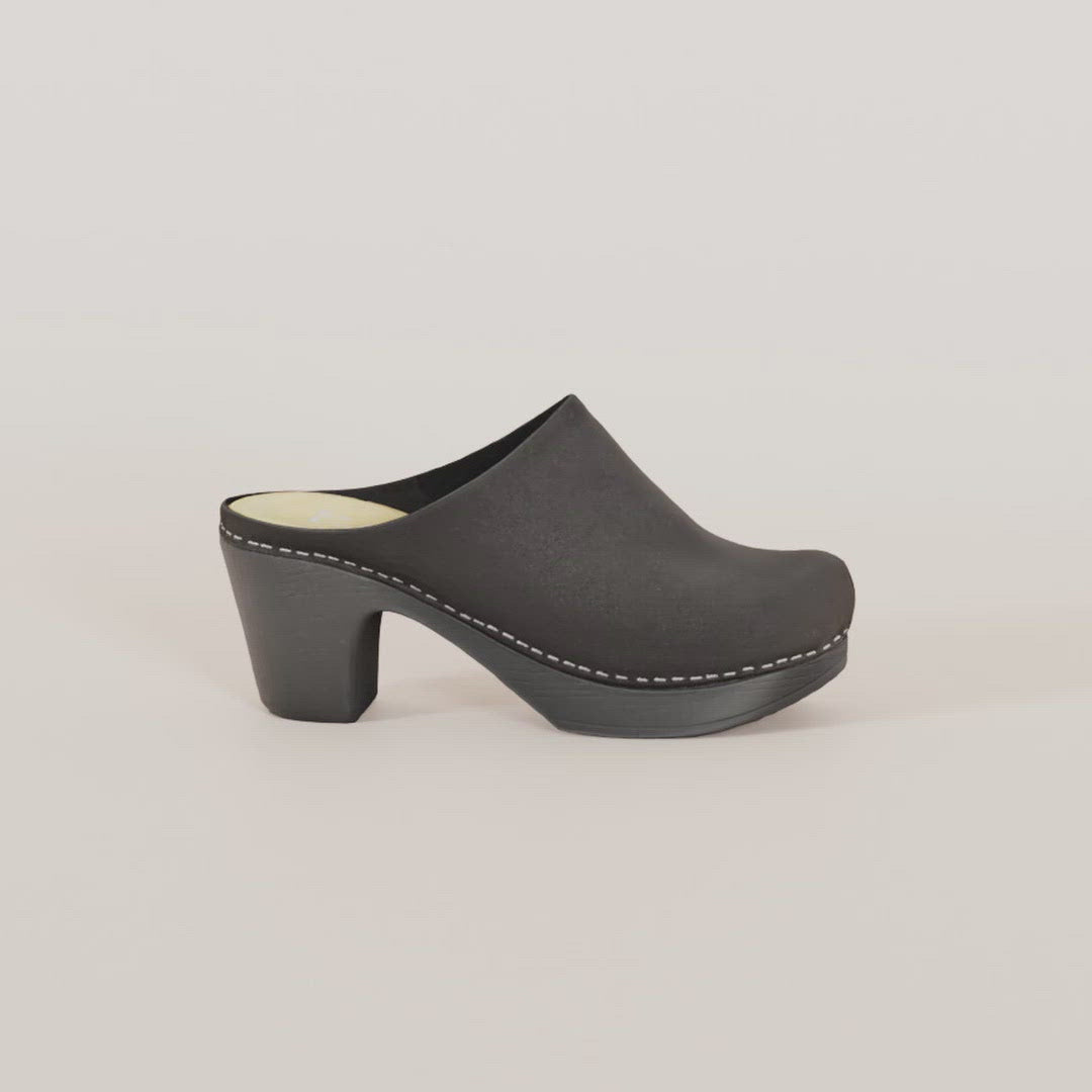 So comfy. So chic. High-heel clogs in with flexible sole and padded footbed. Supreme comfort. Designed in Sweden, handcrafted in Italy with the softest brown leather. Lighter and more comfortable than a traditional wooden clog.
